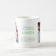 Moderno mantém uma caneca de fotos para uma nova tia. A design tem uma paleta verde e branca com texto de máquina de escrever e tipografia moderna. O modelo está preparado para você adicionar duas fotos, o novo título da tia (tia, tia, etc.) assim como a hora e a data exatas que ela qualificou como nova avó. (Se desejar alterar as cores, clique em "personalizar mais" ou me envie uma mensagem para obter assistência).
