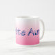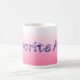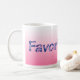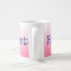 Uma caneca de café da tia favorita, cor-de-rosa, com um padrão.