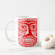 Uma caneca com um efeito de corte de madeira original ousado, Tiki Mask design. Esta design alegre e divertida é repetida de ambos os lados.
