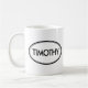 Verifique para fora esta caneca de Timothy! É seu nome Timothy? Ou você tem um marido, um namorado, um membro da família masculino ou um homem Timothy nomeado amigo? Em caso afirmativo, esta "caneca do selo conhecido" é exatamente o presente que você está procurando! As características de design "Timothy" na rotulação preta grande cercada por dois ovals, um fino e um grosso.