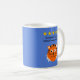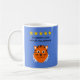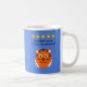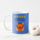 Classificação de 5 estrelas e sua legenda de texto. Ou use o tio perfeito. Recomendaria". O design tem um rosto de tigre sorridente para adicionar à diversão - ou você pode mudar isso carregando sua própria foto. O mesmo design e texto na frente e atrás da caneca, que tem um fundo azul brilhante colorido.