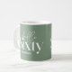 Moderna e mínima tipografia simples, verde-sábio e caneca branca de 60 anos. Parte de uma coleção contemporânea.