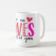 Esta vibrante e animadora design de caneca de café mostra a frase 'todos eu amamos todos vocês' em uma mistura de fontes e cores divertidas. A palavra 'LOVES' aparece de forma destacada com cada letra numa cor diferente e é adornada com formas cardíacas, acrescentando um toque de romance e afeto. A design geral é alegre e perfeita para expressar amor e apreço, fazer que seja a escolha ideal para uma caneca de café. É uma maneira maravilhosa de lembrar a alguém especial que eles são amados com cada gole.