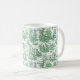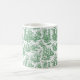 Tela de café verde elegante de jouy. Os impressões são uma fúria constante no momento, este é um elegante e ornamentado padrão de joias-de-jouy que apresenta uma bela cena romântica do campo francês. Este estilo padrão é atualmente tendência para decoração doméstica, roupas, móveis e Capas de ipad, convites e muito mais. Os designs são clássicos e eternos com cores impressionantes. Estas lindas canecas impressas são perfeitas como presentes para aniversários, feriados e qualquer ocasião especial como dia de os namorados e Natal.