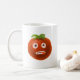 Caneca engraçada do tomate com uma ilustração dos desenhos animados de um tomate vermelho com os olhos grandes na aflição. Esta caneca engraçada do tomate seria perfeita como um presente para um cozinheiro, o vegetariano, o vegan e uma pessoa que amasse tomates e cozinhar.