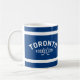 Logotipo clássico da cidade de Toronto Hockey, com excelente, em uma caneca azul com listras brancas. Faz um presente de excelente para o fã de hóquei do bebendo de café.