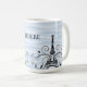 Aproveite seu café matinal com esta Torre Azul Eiffel Flourish Coffee Mug. O design de design de caneca de café apresenta a Torre Eiffel adornada com elogios elegantes contra um fundo azul ondulado. Cores adicionais disponíveis com este design também. Este item pode ser personalizado com um nome, monograma ou ditado favorito da sua escolha. Entre em contato comigo se precisar de assistência para personalização.