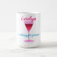Esta é uma caneca personalizada e viscosa para o escritório, com a palavra "Trabalhando para o prosecco" em azul-turquesa sobre um desenho estilizado de um cheio de coquetel rosa de prosecco. Você pode personalizar a caneca de café com qualquer nome.