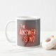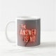 Faça uma declaração ousada com a nossa caneca 'A Resposta é Não', com um vibrante design de sinal de neon. Esta caneca apanhadora de olhos é um complemento humorístico e na moda a qualquer local de trabalho, adequado tanto para homens como para mulheres. Quer você esteja procurando um presente de chefe único ou um sucesso para a próxima festa do Elefante Branco, esta caneca você cobriu. Feito com materiais de qualidade, não é apenas uma afirmação engraçada, mas também uma adição duradoura e prática à sua coleção de tetinas. Pegue a sua hoje e deixe a caneca falar por si mesma! Este é um presente perfeito para dar a toda a equipe de escritório o Dia dos Profissionais Administrativos também!