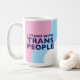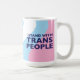 Mostre seu apoio à comunidade trans com esta caneca cerâmica com bandeira trans e o texto "Eu apoio com Pessoas Trans" na frente e no verso.