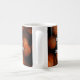 Este padrão de basquete da caneca de café pode ser personalizado com o nome do treinador um lado da caneca e o nome da equipe, o nome da escola e a estação esportiva/ano no outro lado - o fundo é um padrão de bolas de basquete de tamanho variado com aparência 3D - por katz_d_zynes