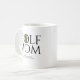Tendy legal caneca de café com um cabeçalho proeminente de "GOLF MOM" em tipografia minimalista e uma silhueta de golfe embutida centralmente no texto. Áreas de texto personalizáveis em cabeçalhos. Ideia perfeita para seu golfista favorito. Excelente de Natal, Dia de as mães, aniversário ou qualquer dia.