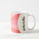 Uma caneca moderna e moderna com o seu monograma inicial em cinzas escuras num círculo colorido creme num fundo rosado de explosão solar. Do outro lado está seu nome em um círculo colorido creme. Todas as cores podem ser editadas na ferramenta design.