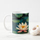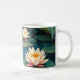 Três lírios brancos e cor-de-rosa e repolhos no estilo art nouveau criam uma linda caneca que é perfeita para qualquer um que ama flores e natureza.