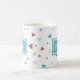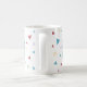 Uma caneca clássica moderna e cônica com formas geométricas de triângulos e espirais em verde pastel, amarelo e vermelho. Personalize com suas iniciais