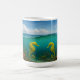 Três cavalos marinhos ouros flutuam suavemente entre corais vibrantes, à medida que o sol brilha através de um mar de turquesa. Esta encantadora cena oceânica de Callum AI envolve sua caneca como uma maré suave, trazendo brincadeira, calma, e uma mancha de chorume submarino para sua rotina diária.