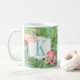 Caneca De Café Tropical Flamingo e Hibiscus Flowers Monograma