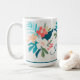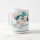 Sip in summer style with this coastal-inspired floral mug, featuring a vibrant wraparound arrangement of watercolor tropical blossoms, lush greenery, and soft citrus tones. A clean white background and deep teal stripe along the base create a bright, modern look that feels fresh and uplifting. Personalize the front for a thoughtful gift or a charming addition to your own seasonal kitchen. Perfect for morning coffee on the patio, beach house mornings, summer entertaining, or adding a warm splash of color to your day. This mug pairs beautifully with the matching towels, napkins, tray, placemats, and kitchen accessories from the Summer Collection for a cohesive, sun-washed coastal vibe.