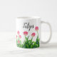 Esta caneca de café é mostrada com uma adorável impressão de tulipas rosa. Cor Branco Personalize este item ou comprar como está. Imagem do stock vecteezy.com