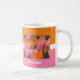 Uma bela fotografia de tulipas cor-de-rosa e laranja brilhantes e listras grandes e ousadas. Personalize esta caneca de café feminina com o seu nome. Faz um presente de excelente para aniversários, Dias de as mães ou qualquer ocasião especial!