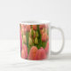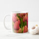 Uma tulipa cor-de-rosa solteiro se destaca entre um campo de tulipa rosa e amarela. Foto tirada perto de Amsterdã, Holanda.