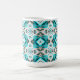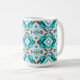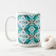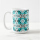 Esse design apresenta um padrão geométrico com forma de diamante repetida com bordas borradas e revestidas radiando para fora. O efeito geral combina simetria, energia e profundidade — um equilíbrio entre o sentimento tribal e a geometria moderna na turquesa, cinza e creme.