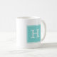 Adicione suas iniciais ou outro texto para personalizar esta caneca simples e moderna de monograma quadrada em turquesa e branco. Esta moça de moda e moça é perfeita para o seu café matinal.