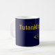 Tutankhamun é o famoso rei-menino do antigo Egito, que morreu aos 19 anos. Eu fiz esta caneca em azul e amarelo com uma dica de vermelho porque sua máscara de morte estava em ouro e azul.