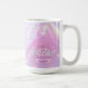 Elegante design personalizado de caneca de café para despedida de solteira disco em belas cores gradientes de lavanda a periwinkle e rosa com uma bola de discoteca funky, fonte retro glamorosa e um fundo de luzes de discoteca cintilantes. Este design sofisticado e elegante é facilmente adaptado para qualquer jantar especial e/ou evento de dança. Procure ID928 para ver outros produtos desta coleção da moda.