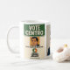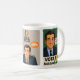 Tigela de café em forma de caricatura com 3 episódios históricos na vida de Adolfo Súarez. Por um lado o cartaz da União do Centro Democrático (UCD) nas eleições de 1977. Por outro lado o cartaz do Centro Democrático e Social (CDS) em 1987. E no meio Adolfo Súarez pronunciando as palavras inesquecíveis: "Posso prometer e Prometo".