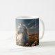 Caneca De Café Unicórnio Branco Majestoso em Campo Floral Místico