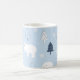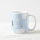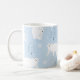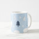 Ursos polares fofinhos cercados por árvores de Natal e flocos de neve contra fundo azul-gelo