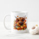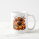Vaca do planalto num pedaço de abóbora com flores e folhas de outono.