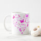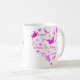 As fitas cor-de-rosa bonitas, as borboletas, e as flores em formas e cores originais em um coração, e as mensagens do "amor, cura, esperança, acreditam, coragem" apoiar a consciência do cancro da mama.