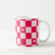 This stylish Mug features a dark pink and light pink checkerboard pattern accented with small heart details for a fun, modern look. Perfect for everyday use, with a playful pop of color. Ideal for Valentine’s Day for mom, gift giving, or anyone who loves trendy, cheerful accessories. Letters can be modified.