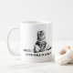 Um gato engraçado se senta num chão com as patas frontais cruzadas e a cauda para a esquerda. Uma impressão de um animal de estimação um pouco cansado. O dia foi duro e cheio de experiências. O vamos chama isso por dia. Uma caneca de café única e elegante para qualquer um. Design personalizável. Você pode alterar ou excluir o texto. Não se esqueça de escolher outro estilo ou cor da caneca. Você também pode transferir este design para outro produto de sua escolha, basta usar uma opção à direita desta descrição.