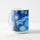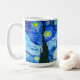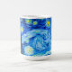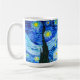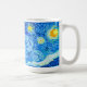 Coffee Mug featuring Vincent van Gogh’s oil painting The Starry Night (1889). Inspired by his stay at an asylum, the art depicts a village underneath a night sky of blue and yellow moon and stars. A great gift for fans of Post-Impressionism and Dutch art.