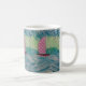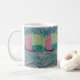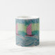 Um veleiro caprichoso com sua vela de bolinhas rosa, navegando pelas belas águas azuis do oceano, criado como obra de arte em mídia mista, um acréscimo encantador para a sua xícara de café da manhã ou chá da tarde.