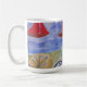 Em um dia ensolarado de verão, a colina que olha para o mar está coberta de flores lindas e coloridas. Há uma forte brisa quente e muitos barcos com velas vermelhas brilhantes navegam nas águas azuis da baía. Esta é uma aquarela vibrante e alegre que trará um salto de cor brilhante para sua casa.