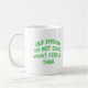 Inscrição verde-brilhante rastejada, VELHO O SUFICIENTE PARA NÃO SE IMPORTAR COM O QUE AS PESSOAS PENSAM. Há um ponto no tempo em que você percebe que impressionar pessoas não importa enquanto você estiver feliz consigo mesmo e essa xícara diz tudo.