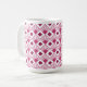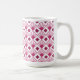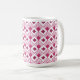 Esta caneca tem um design de arte de diamantes coloridos de beterraba com linhas diagonais e diamantes de beterraba mais escuros em um campo de branco.