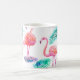 Caneca De Café Verão tropical com folhas de palma de flamingos e