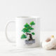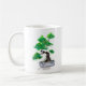 um trabalho tradicional da aguarela que descreve uma árvore japonesa dos bonsais em aguarelas do verde vívido em uma caneca de café