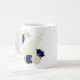 Bela caneca de café com flores azuis e brancas reais e folhas verdes PARA MAIS PRODUTOS DE COBERTURA clique na coleção acima ou entre em contato comigo