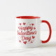 Esta imagem festiva apresenta a alegre mensagem "Feliz Dia dos Namorados" em negrito cursivo vermelho, cercada por corações vermelhos, pontos e floreios em um fundo branco limpo. É um design vibrante e alegre perfeito para celebrar o amor e o afeto.