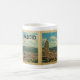Design de Espanha em Viagens vintage de Madri com vista a uma cidade com montanhas como fundo.