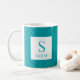 Stand out with this vibrant personalized mug featuring a dynamic teal and turquoise color palette in a subtle, modern reptile or fish scale pattern. The unique design is centered with a crisp white frame for your personalization. Easily customize it with your name and initial to create a stunning, one-of-a-kind coffee cup. It makes a brilliant personalized gift for friends, students, or anyone who loves ocean-inspired colors and bold accents.