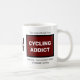 Viciado em ciclismo, design de caneca preta e vermelha. O esporte e o nome / inicial podem ser facilmente alterados para atender às suas necessidades usando o modelo fornecido.