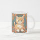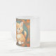 Fosco Vidro Café Mug apresentando um gato laranja no estilo de Alphonse Mucha! Este gatinho adorável com olhos verdes é enquadrado pelas folhas do outono. Um presente maravilhoso para amantes de gatos e colecionadores de Art Nouveau!