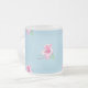 Caneca De Café Vidro Jateado Blue mug with pink Lilly's
